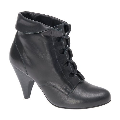 Complement a cute skirt with these lace-up ankle boots. They look great before and after hours, and feature cuffed profile, chic shiny finish and cone-shaped heel.