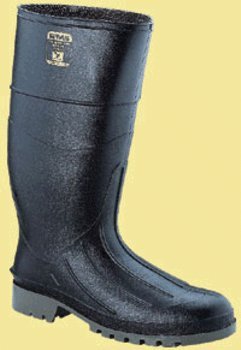 15" "Black Iron Duke" PVC Steel Toe Boots - Black Iron Duke® * Poly-blend safety knee boot with steel safety toe and steel shank. * Deep angle cleat sole and heel. * Made in U.S.A. 18801-6 Men's siz