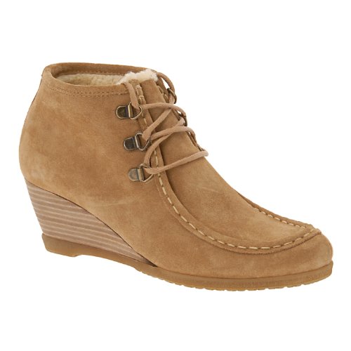 If you want mocs that make a more stylish statement, single out these lace-up wedge shoes / booties featuring supple suede upper, D-rings, and cozy fleece lining.