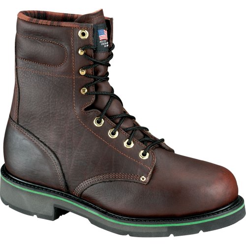 Work One 8" Steel Toe Sport Boots S080. You're reliable... waking up each day and heading to the job site isn't easy, but it's got to be done. Lace up a pair of these dependable Work One Boots for footwear that's built to match your drive toward excellence, step for step. A total cushion arch support system won't let your feet cramp up on rugged ground, and the incorporated memory foam liner "remembers" your foot shape for a consistent, custom fit. Details: Full-grain, black walnut, oil-tanned leather uppers for style; Durable Goodyear welt construction; Rugged, non-slip Work One dual-density polyurethane sole with 90 Degree heel; Soft comfort weave lining; Flex notches stretch and move with your feet, and the fatigue mat cushions each step; Rubber green stripe midsole for shock-absorbing cushion; Steel toe and electrical static-dissipative protection; Each Boot weighs approx. 34 ozs. State Size. Order yours today! Men's Work One 8" Steel Toe Sport Boots S080