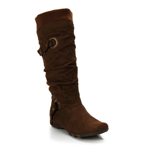 Buckle Mid Calf Slouch Boots Dark Brown Review